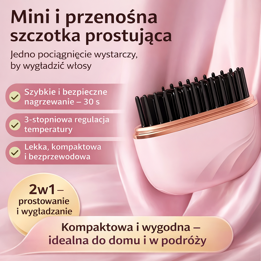 LumiBrush™ pomaga ujarzmić włosy dokładnie wtedy, gdy tego potrzebujesz — bez kabli, bez stresu i bez długiej stylizacji.