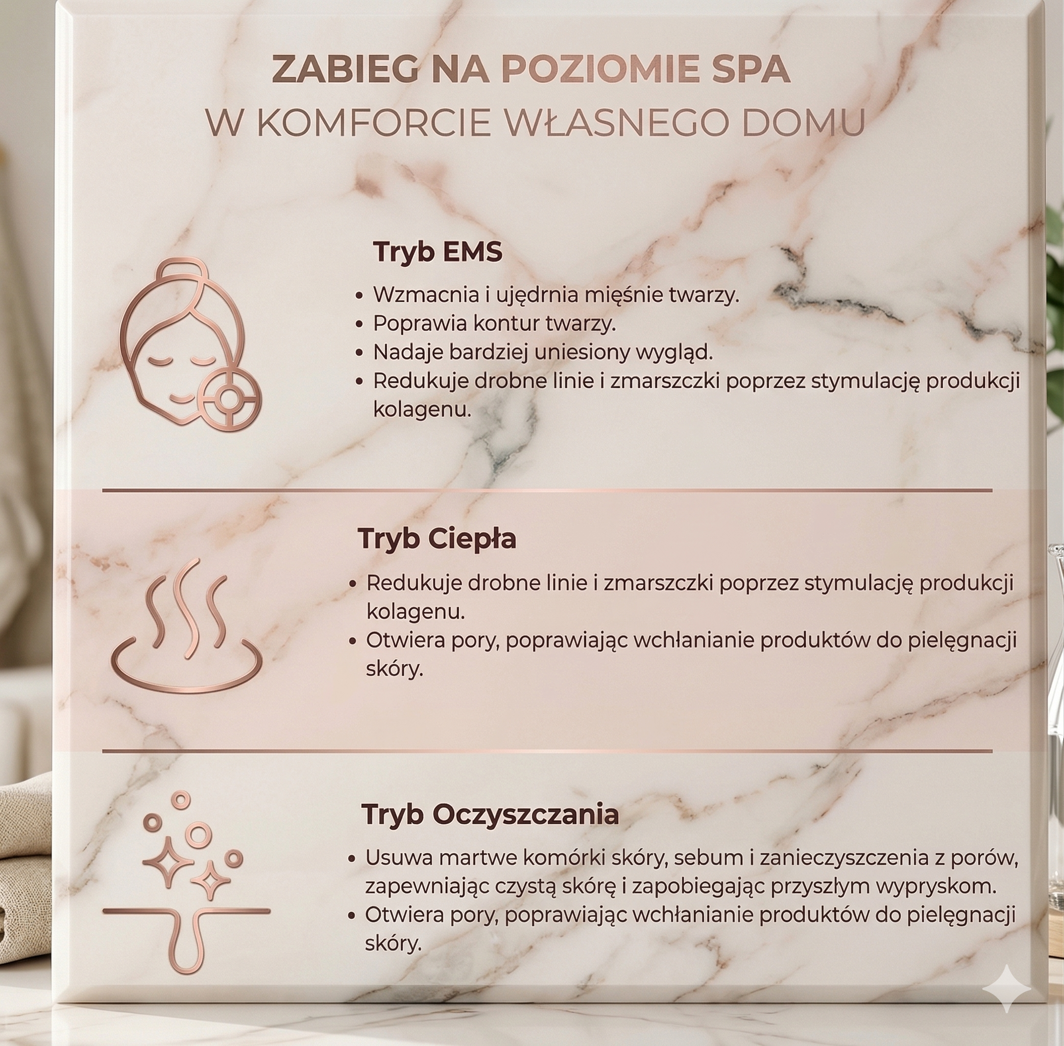 • Tryb EMS – delikatny masaż wspierający domową rutynę beauty